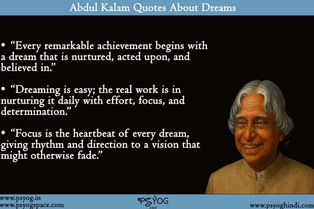 Abdul Kalam quotes about dream teach us that ambition is not enough; it is the deliberate, steady, focused pursuit of dreams that turns imagination into history.